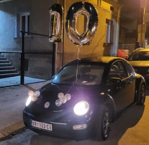 "Za 10 godina napornog, ali pre svega lepog rada, za tvoju vernost, odanost, predanost poslu, koji si ostvarila radeći u Gradskoj Meani, tebi na dar kao znak pažnje! U zdravlje vozila", ovo je čestitka...