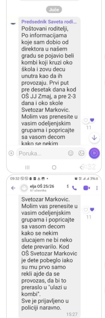 Zanimljivo je da se u spornoj poruci pominju još dve škole, koje se nisu bavile ovom temu niti slale cirkularne poruke, što sa jedne strane objašnjava da ovaj „beli kombi koji kruži gradom“ ima sivu nijansu, ne zna se iz kog razloga.