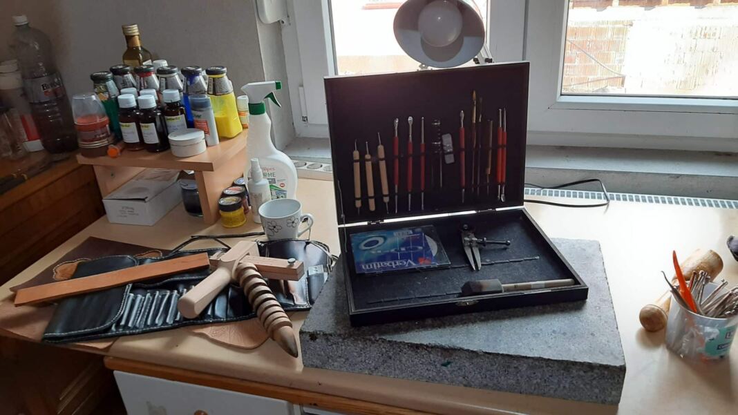Ovaj vrsni zanatlija izrađuje široku lepezu proizvoda, novčanike, futrole za telefone i noževe, kaiševe, remenike, priveske za ključeve. Za izradu ovih predmeta od alata koristi igle, konce, noževe, kalupe, šila. Od ostalih alata koristi veliku ploču za koju kaže da mu je uspomena sa gradskog šetališta, i brojne predmete druge namene koje je dovitljivošću iskoristio u svom radu.