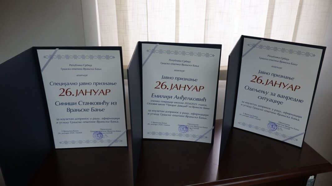 Povodom Dana Gradske opštine Vranjska Banja, Specijalno javno priznanje ,,26. januar”, dodelјeno je Siniši Stankoviću iz Vranjske Banje, koji je sopstvenim vozilom učestvovao u gašenju požara. Javna priznanja „26. januar“, dodelјena su Odelјenju za vanredne situacije za izuzetan doprinos u gašenju požara na području Vranjske Banje i okoline i Emiliji Anđelković, đaku generacije u školskoj 2024/2025. godini, OŠ ,,Predrag Devedžić”.