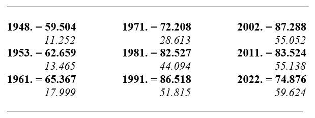 Za ljubitelje brojki i statistike, prikazaćemo kako se u Vranju, odnosno bivšoj opštini, kao i u samom gradu (kose brojke) kretao broj stanovnika na svih devet posleratnih popisa od 1948. godine.