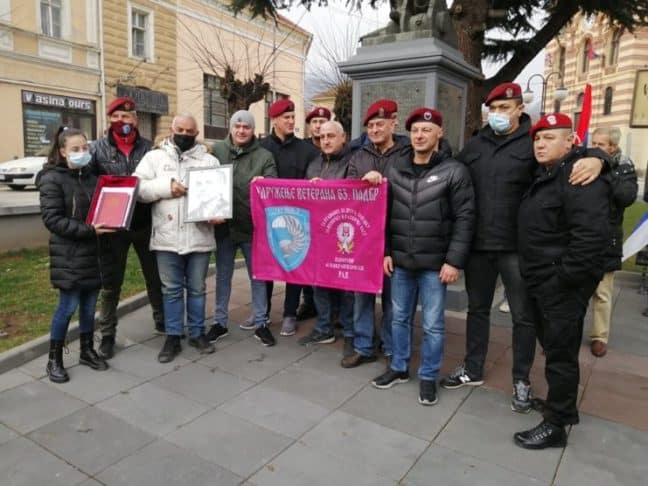 Zastava 63. padobranske brigade na svom simboličnom putu nakon što je 24. novembra krenula iz Niša, juše je stigla u Vranje.