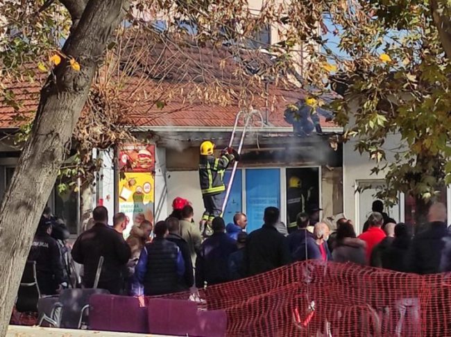 Podsećamo da je požar izbio oko podneva, da je vatra zahvatila dva ili tri lokala preko puta hotela Vranje. U pitanju su dve advokatske kancelarije, Nikolić i Ristić.