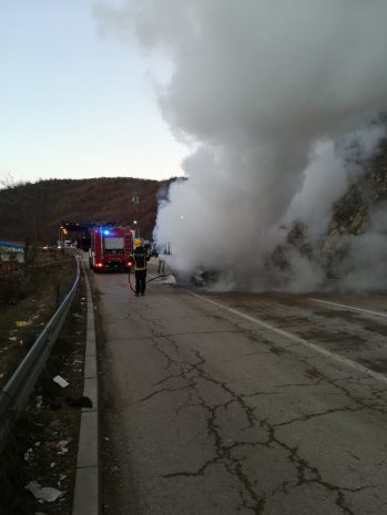Vatrogasne spasilačke jedinice i saobraćajna policija su brzo reagovale i požar na automobilu je ugašen.