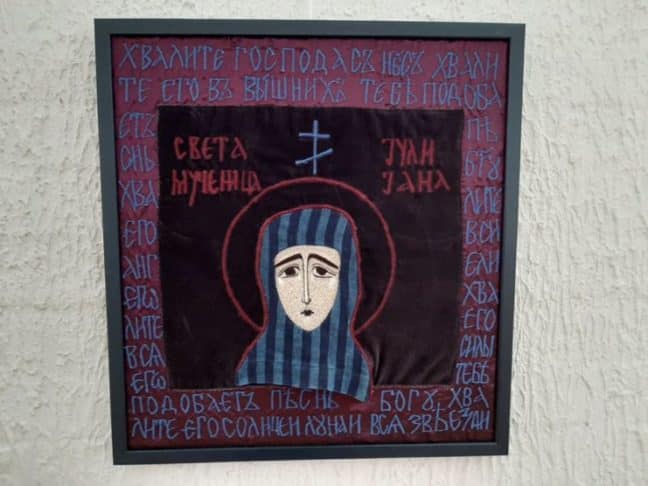 Izložene ikone su rađene u tehnici veza na recikliranim materijalima koji su nekada upravo bili deo odeće žena koje su na određen način odbacile starog čoveka i ogrnule se haljinama vrline i dobrih dela. Odbačeni svileni kostimi, košulje i haljine sada poprimaju novi oblik i umesto nekadašnje svetovne dobijaju duhovnu ulogu.