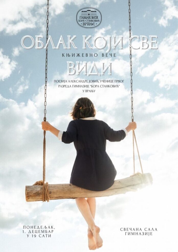U Svečanoj sali Gimnazije “Bora Stanković“ u Vranju u ponedelјak 1. decembra 2025. godine biće održano književno veče Aleksandre Jović, učenice prvog razreda, sa početkom u 19 sati.