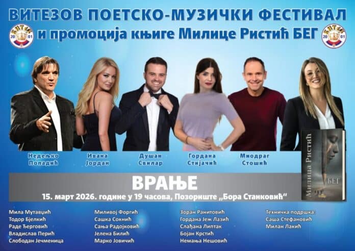 Povodom promocije zbirke pesama BEG, naše sugrađanke, Milice Ristić, u Vranju će 15. marta biti održan Vitezov poetsko-muzički festival.